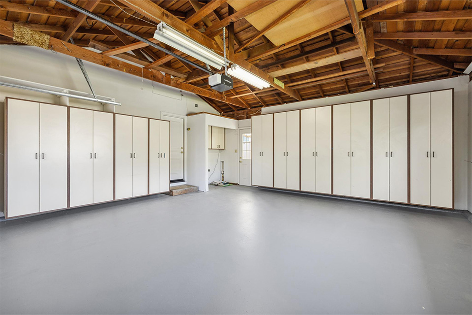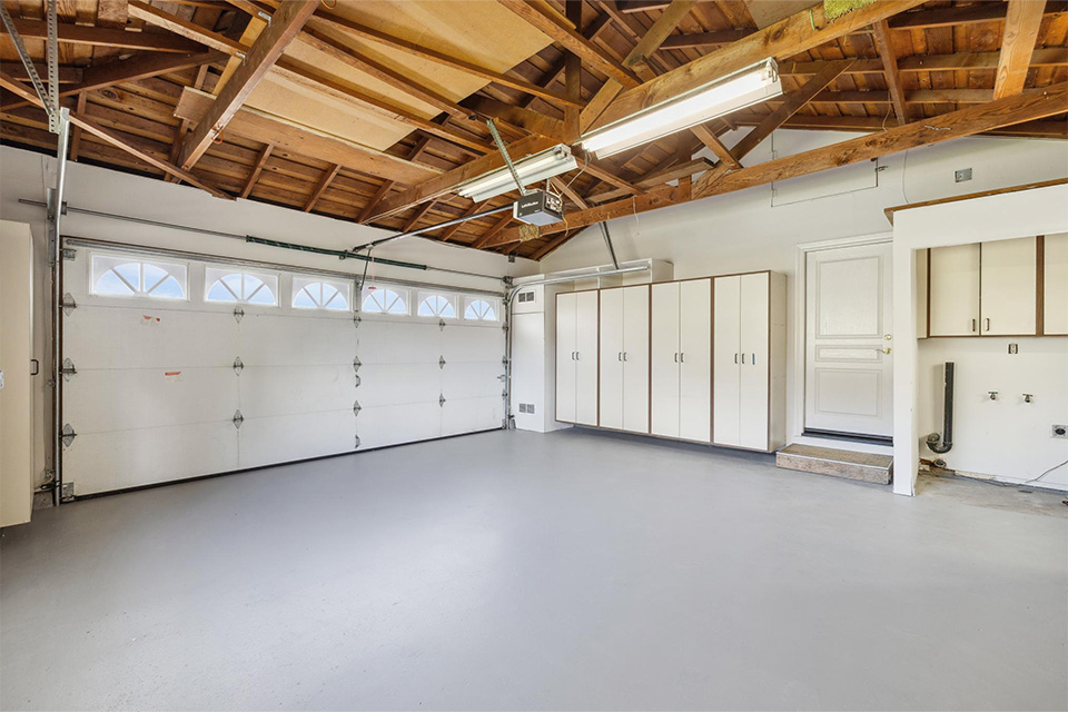 - Two-car garage with built-in cabinets