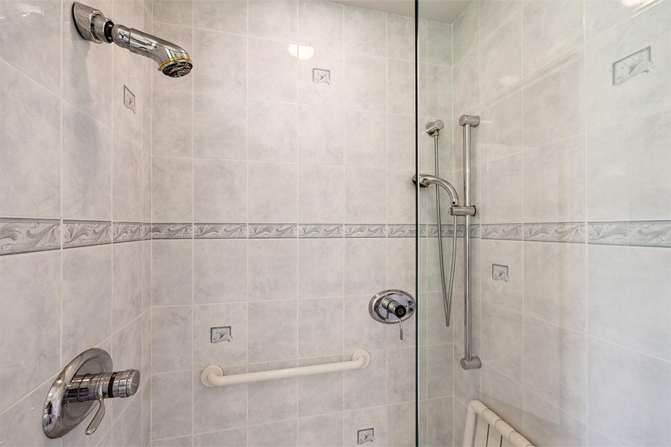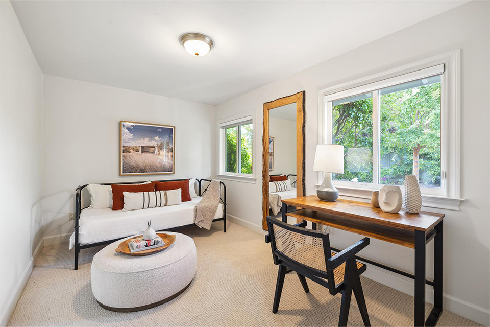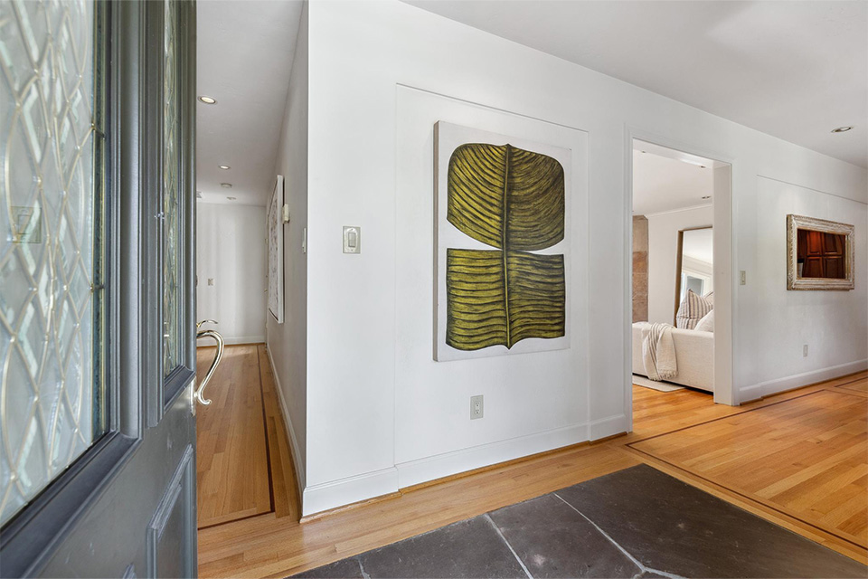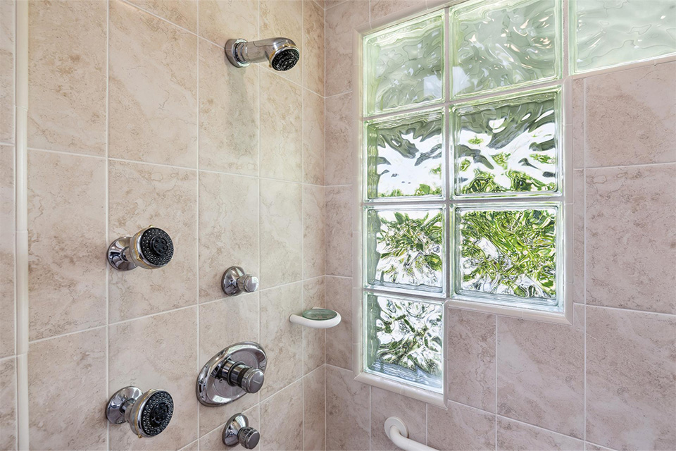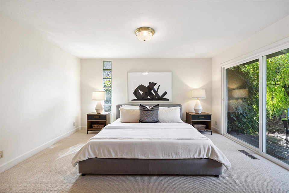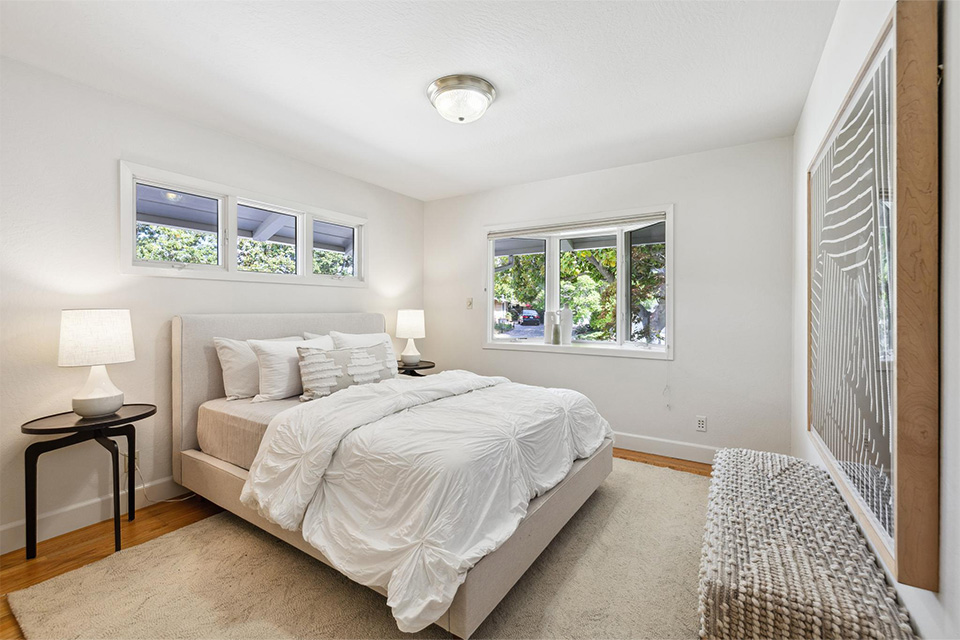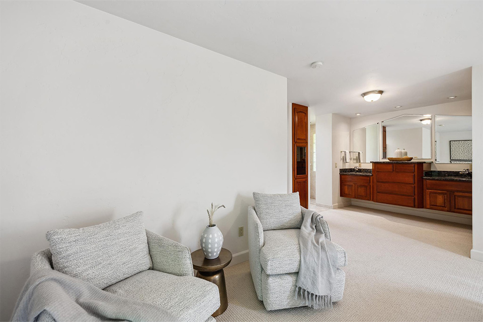 - Three additional bedrooms and a hall bathroom with dual sinks and a walk-in shower