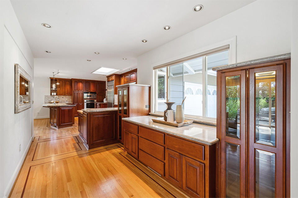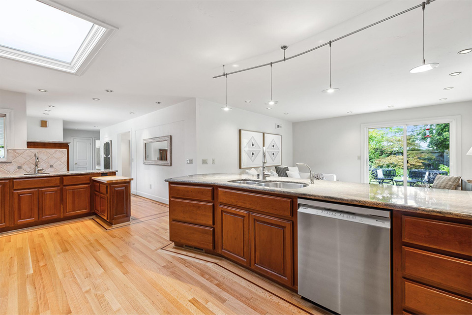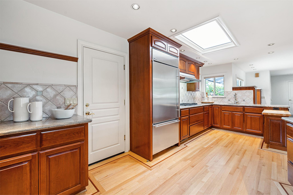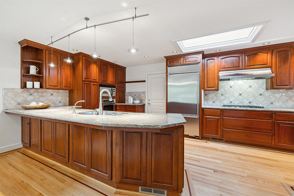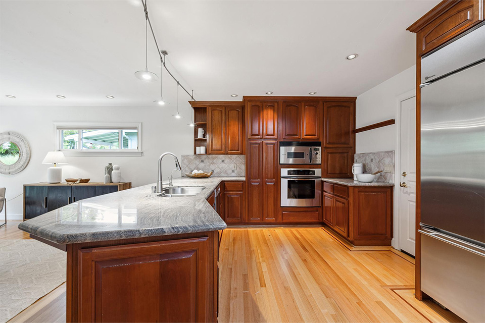 - Expansive kitchen with stainless steel appliances, granite countertops and two sinks