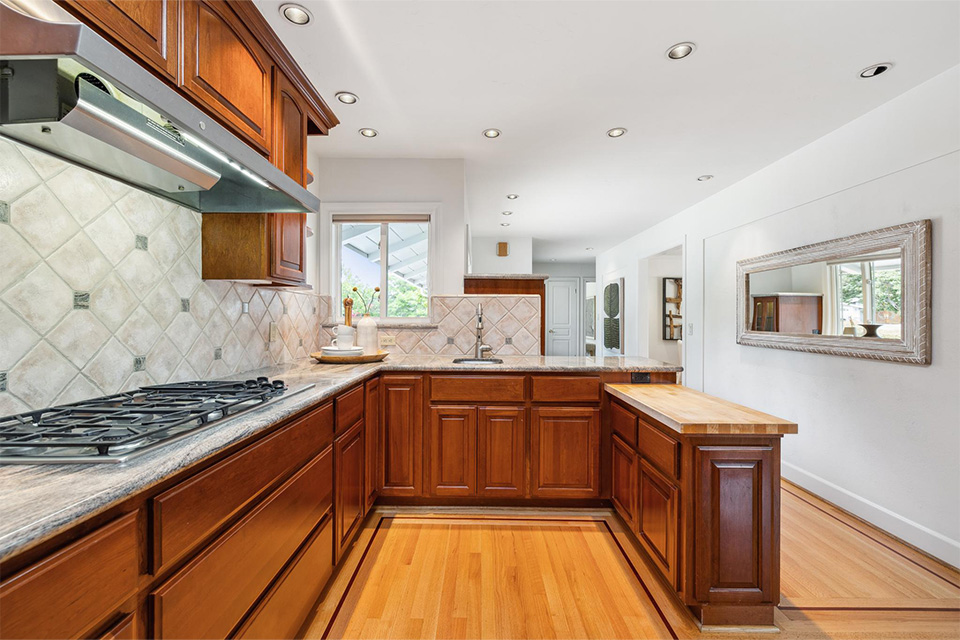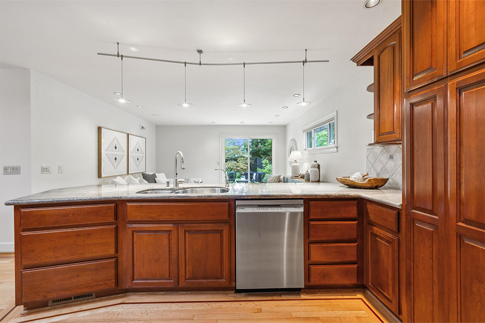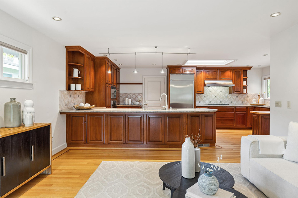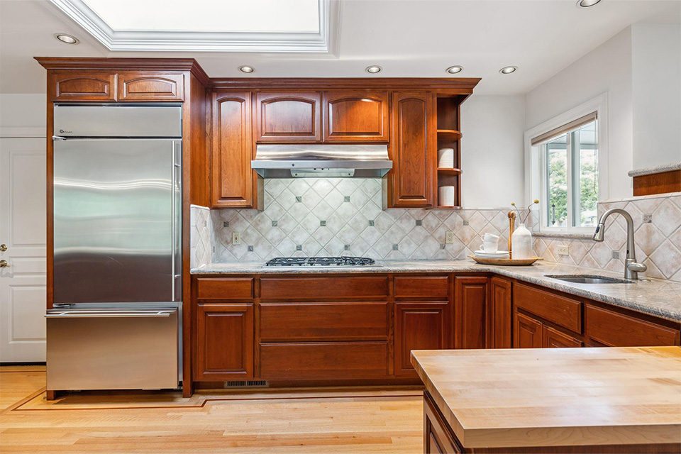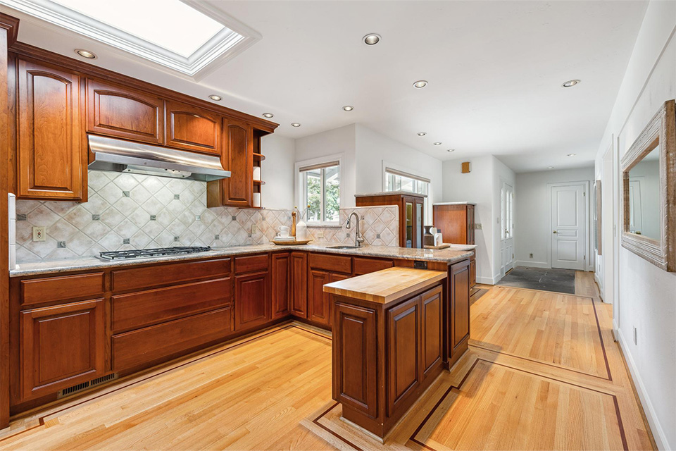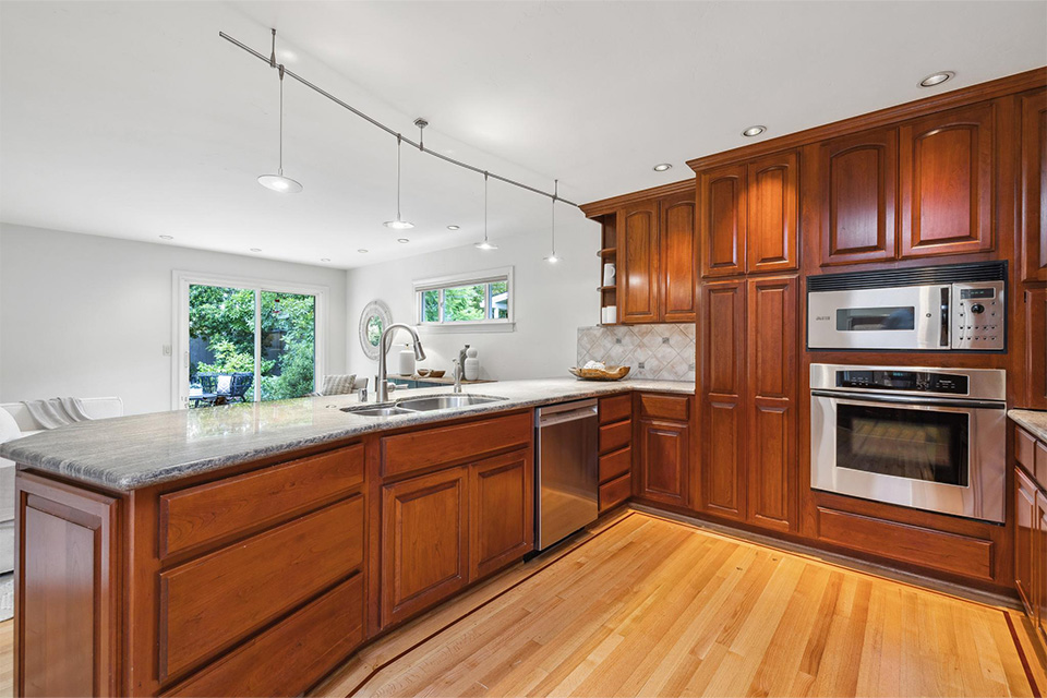 - Expansive kitchen with stainless steel appliances, granite countertops and two sinks