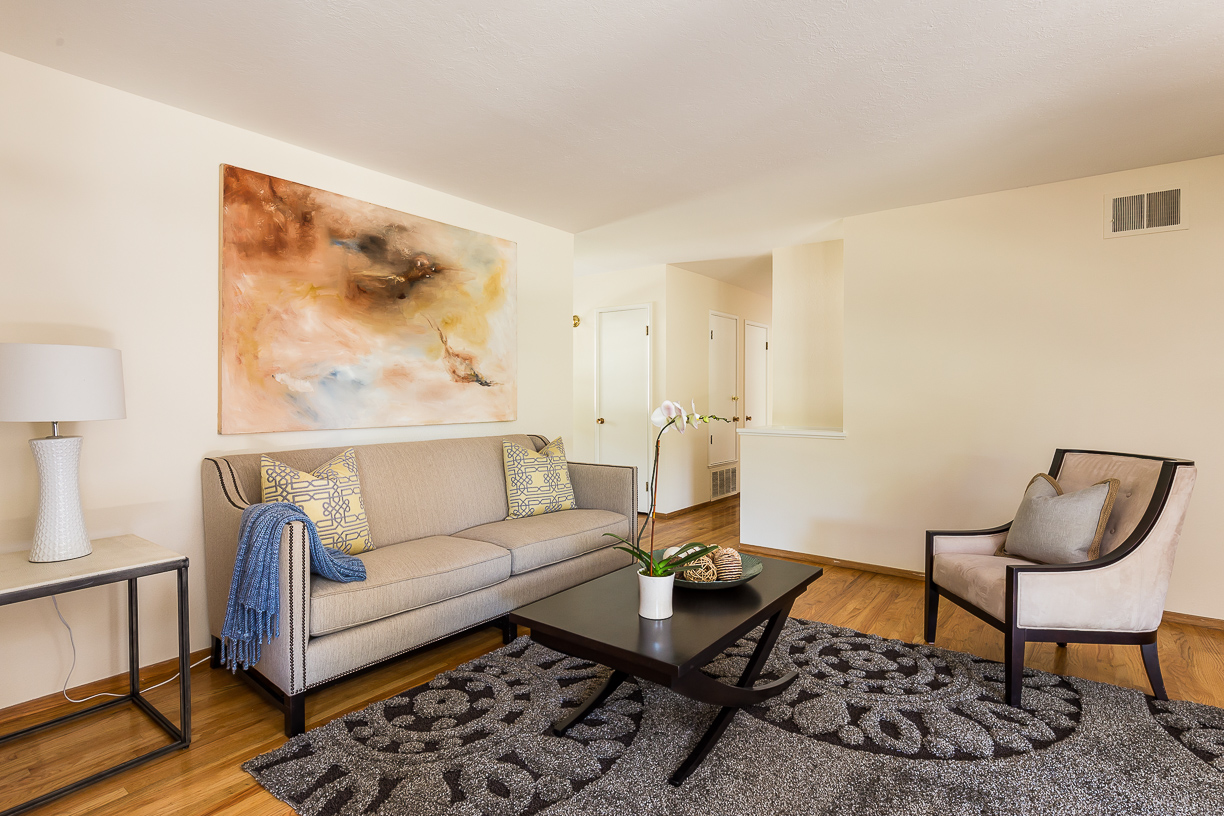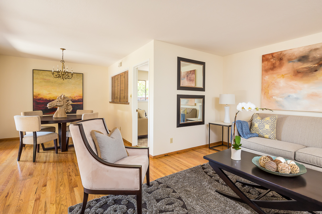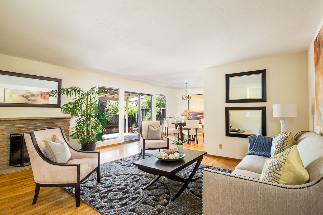 Living Room adjoins dining room and looks out to covered patio; great for entertaining.