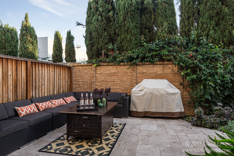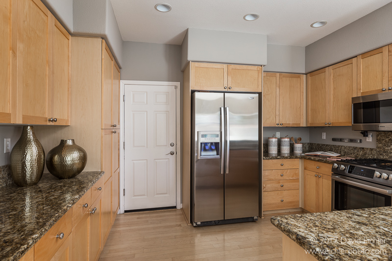 Well-appointed, spacious kitchen with granite countertops, maple cabinets, and stainless steel Bosch appliances opens to dining area and seamlessly connects to the outdoors.