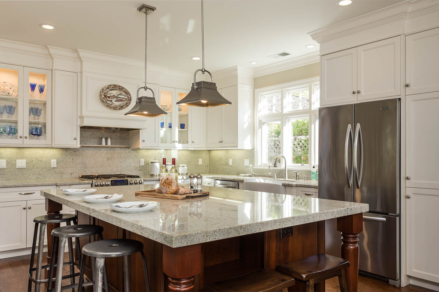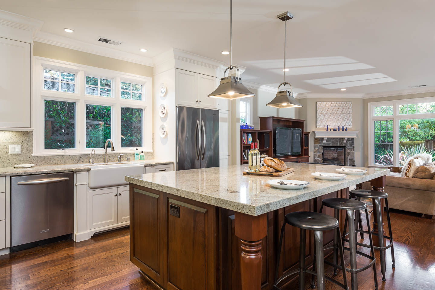 The heart of the home is the spectacular kitchen with custom cabinetry and spacious center island; it’s the perfect space for large parties and quiet, intimate dinners alike.