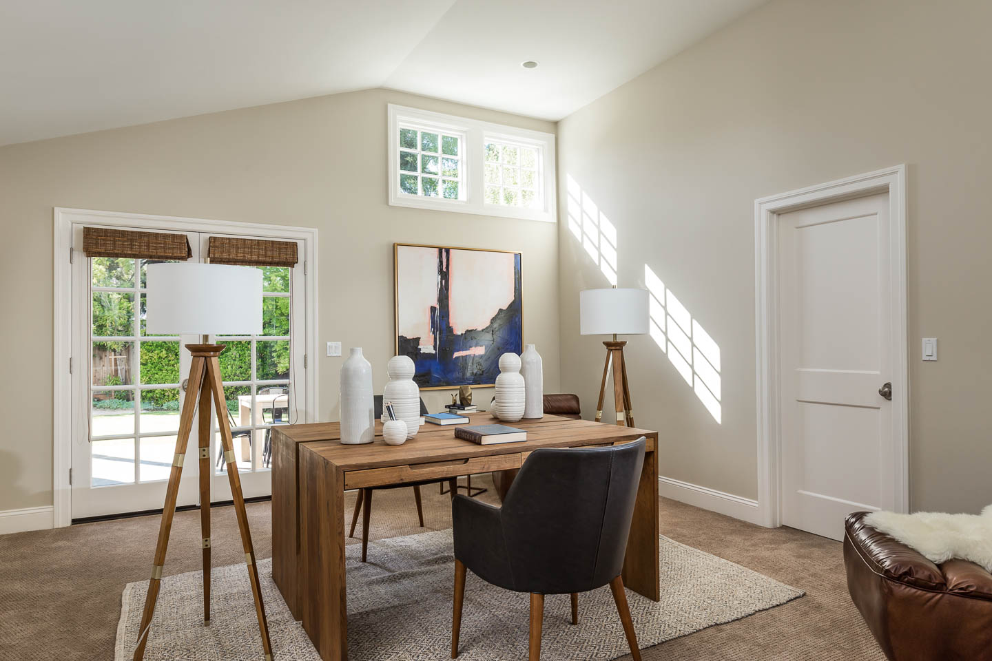 Fabulous office with double french doors opening to rear yard allows for working at home and doubles as an ensuite guest room on main level.