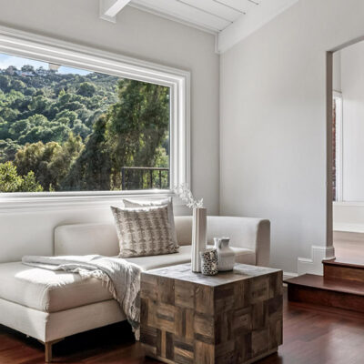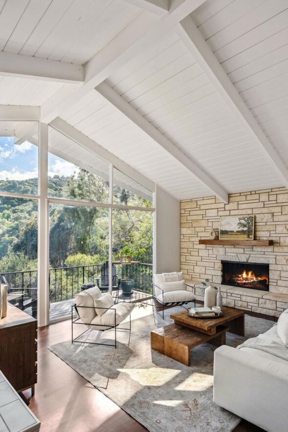 Escape the hustle and bustle and head home to this verdant, serene destination in the beloved picturesque Devonshire Canyon neighborhood. The quiet and peaceful setting, surrounded by nature and a stunning canyon view, calms the soul and welcomes you to this sophisticated single-level home located on a private driveway at the top of a hill.