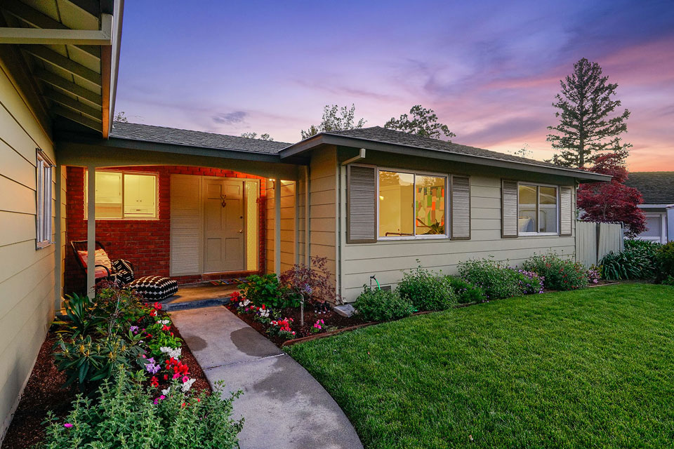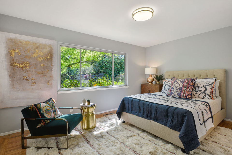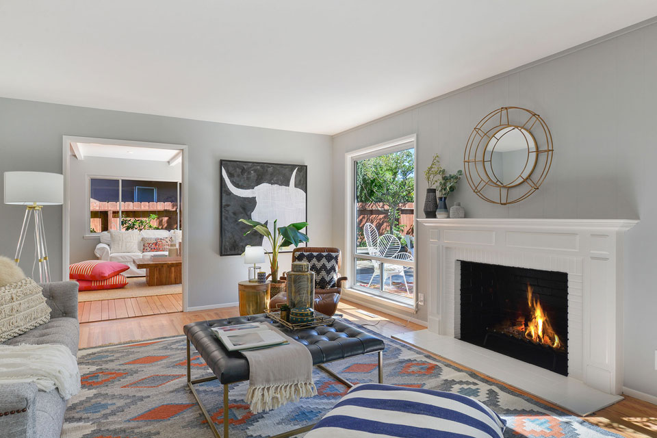 A gorgeous Japanese maple tree is the first thing you see as you enter this home and approach the living room with large picture windows and a stately fireplace.