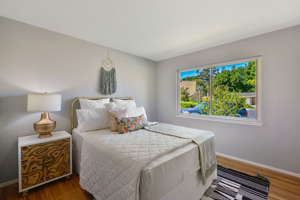 Wonderfully set in the rear of the home, with a large window overlooking the verdant yard, is the spacious bedroom with double closets.