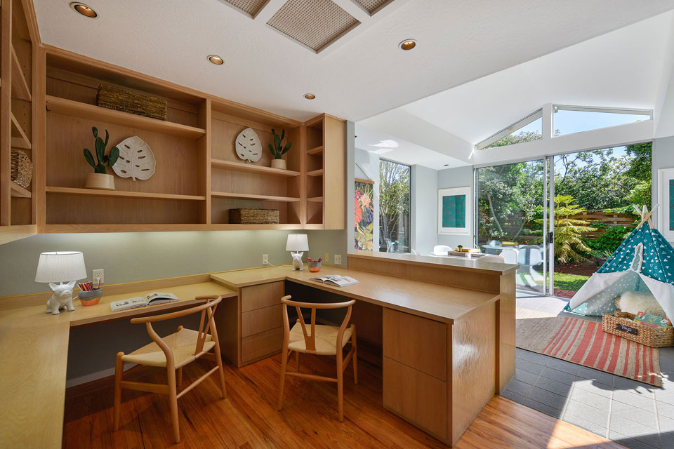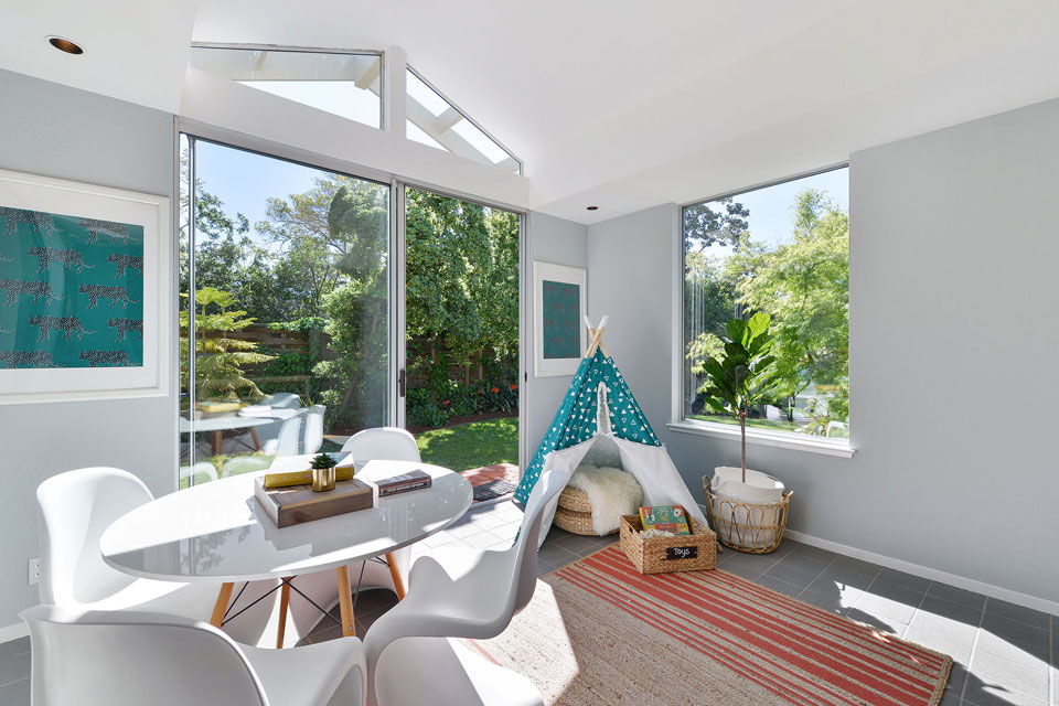 A delight was the addition of the sunroom which evolved from a weaving studio, to a playroom for the grandchildren, and finally a reading library for grandpa with his afternoon cup of tea.
