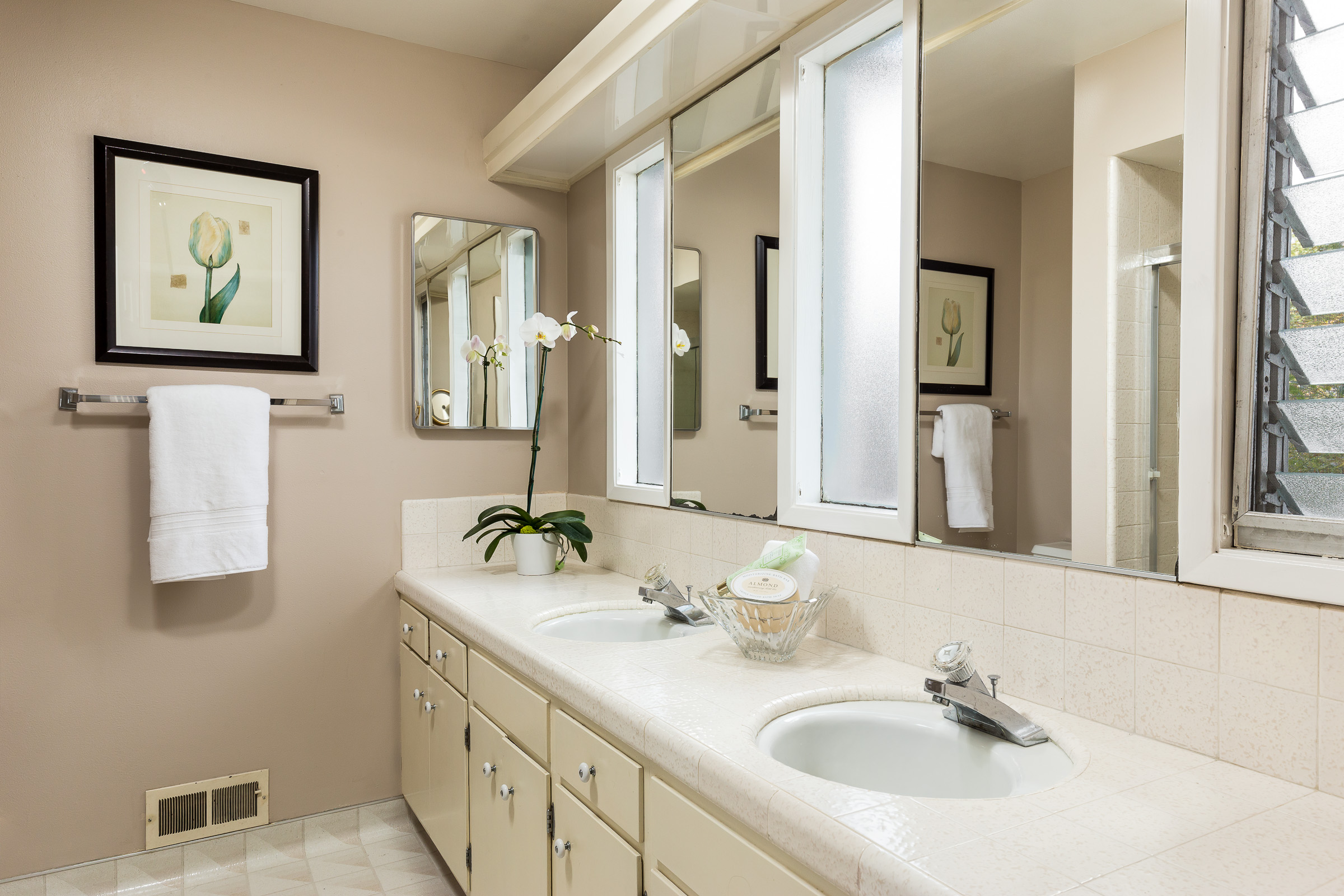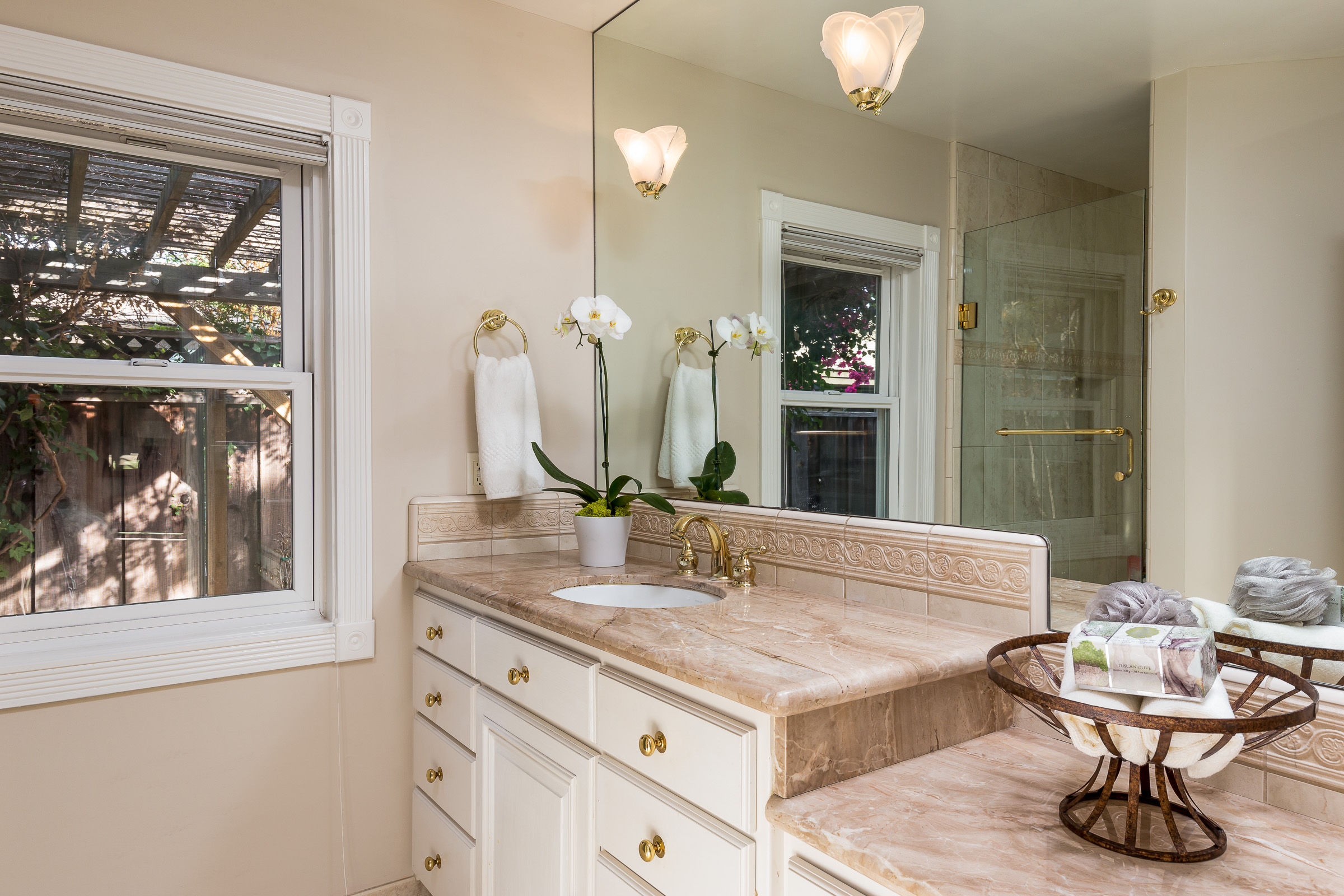 Master suite has double closets and a sophisticated master bathroom with marble countertops and a custom designed shower.