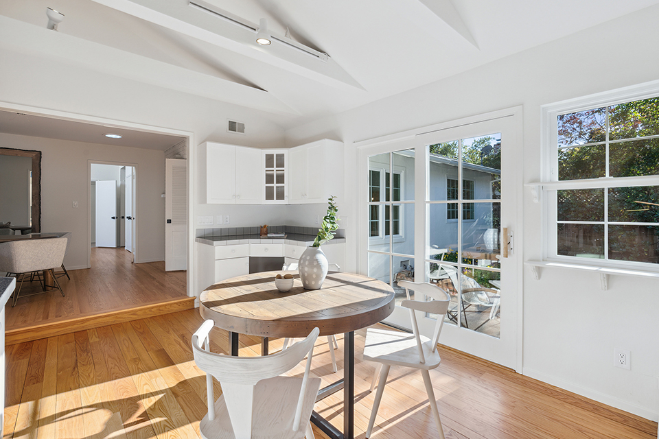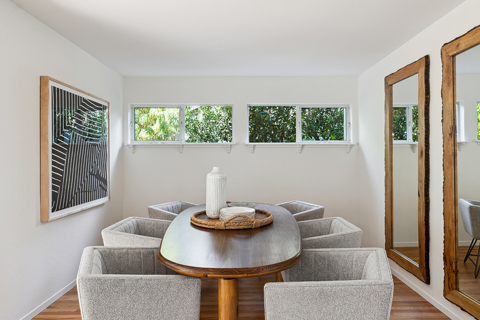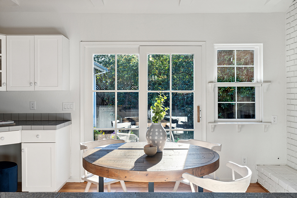 - Wall of windows looking out to the backyard