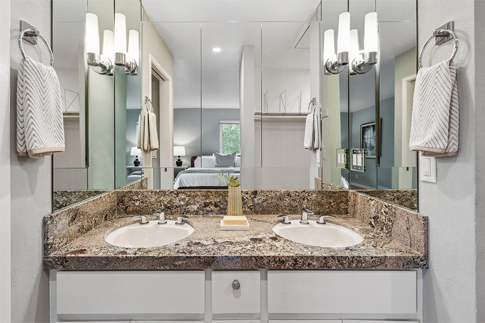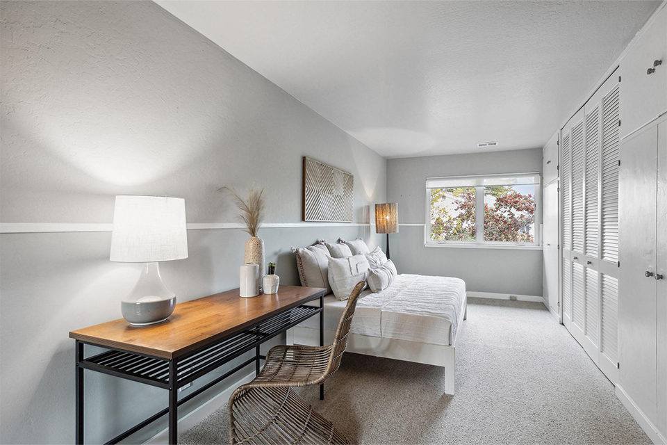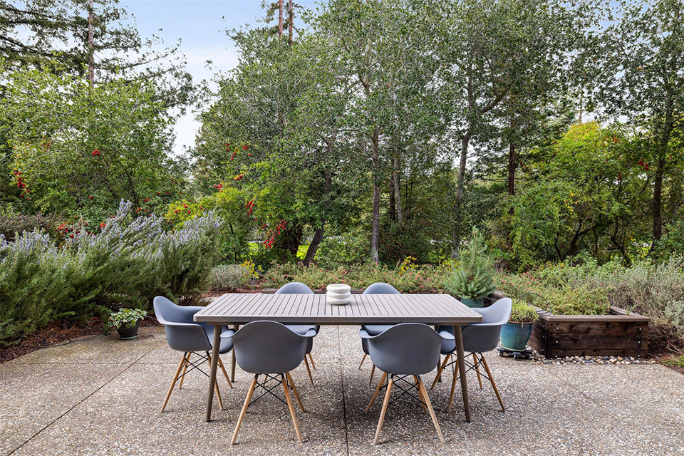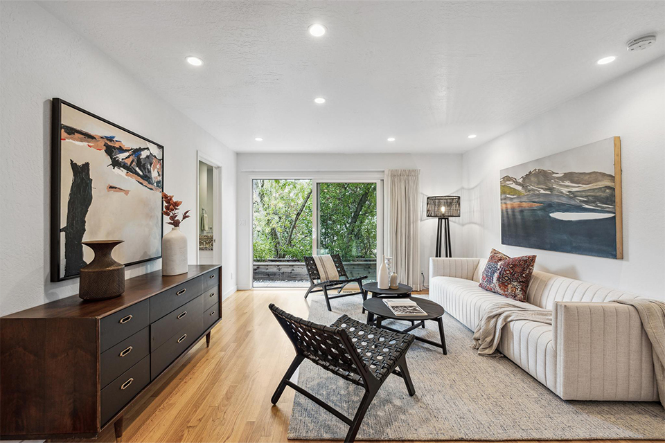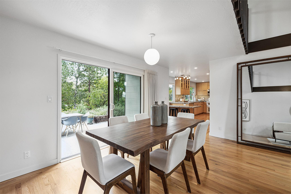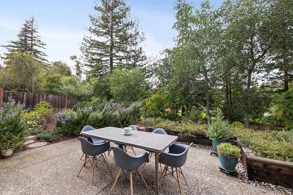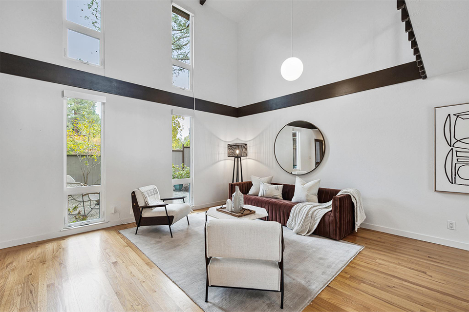 This light-filled two-story home is bright, welcoming, and functional. The soaring ceilings in the living room make the space feel even larger than it is. It is bright, airy, and designed with an excellent flow to the back patio and verdant landscaping, allowing effortless entertaining for family and friends and peaceful relaxation.