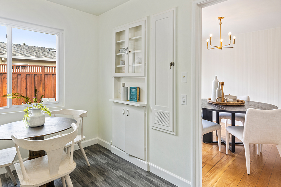 Prime Community Center location, right across the street from the wonderful Eleanor Pardee Park with its expansive green lawns, community gardens and playgrounds. Formal entry with coat closet, lovely living room/dining room combo with fireplace and glass sliders to the rear patio, and eat-in kitchen with built-in hutch. Refinished hardwood floors, fresh interior paint and charming wood-paneled walls. Light and bright bedrooms and a shared bathroom. 2-car attached garage with laundry, workshop and door conveniently leading to the kitchen. Rear and side yards have exciting possibilities of expansion. Excellent neighborhood schools: Duveneck Elementary, Greene Middle, Palo Alto High.